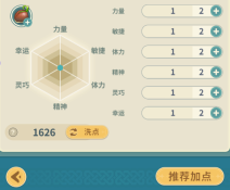 属性分为力量、敏捷、体力、精神、灵巧、幸运这几种,每种属性都有着不同的作用,你能够依据伙伴的特点来进行点数分配。