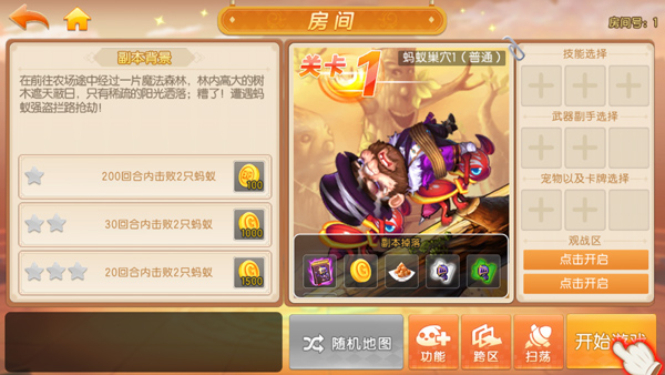 8、随后挑选打算携带的技能、武器以及宠物,点击“开始游戏”。