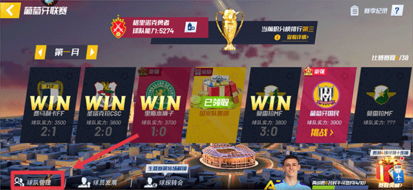 3、于联赛界面里,点击左下角的球队管理。