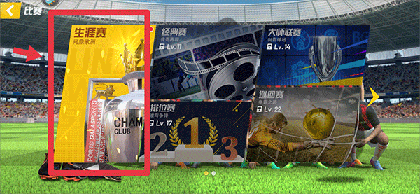 大部分时间每天都耗费在此处(等级越高,开放的赛事数量越多)。生涯赛中会出现卡等级的情况(我就碰到过3次),别慌张,去完成各类能获取经验的任务,该购买次数的就买次数。热身赛里,除了能得经验书的项目,其他的轮流刷。经典赛就是白白送的5次刷材料机会。排位赛和欧陆赛事,有多大实力就能获得多大的回报。训练营中,满足要求的球员可得到双倍奖励。巡回赛在晚上7 - 8点会有额外奖励。挑战赛只要选好箱子里的BUFF,拿到40星还是挺容易的。
