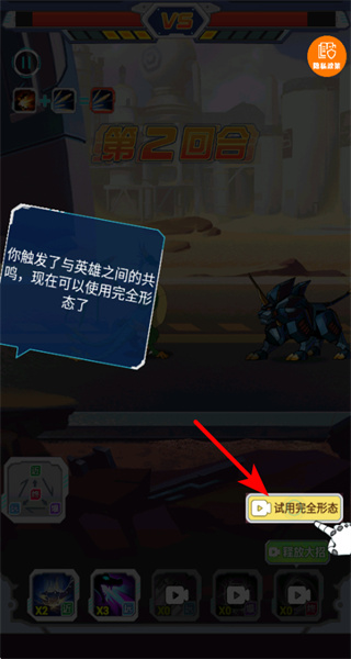 3、当触发英雄共鸣后,点击“试用完全形态”,英雄即可变身。变身后,英雄的战力将得到大幅提升,助力你迅速击败敌人。
