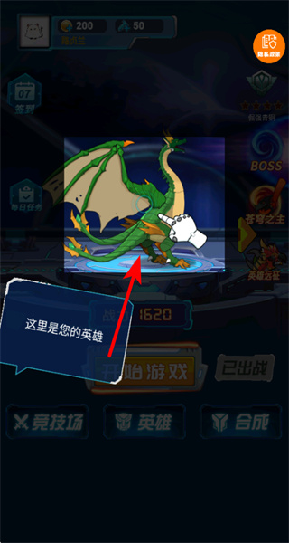1. 进入游戏之后,点击像绿色巨龙这样的英雄,就能查看其属性与技能,从而了解英雄的战力状况,为后续制定战斗策略提供帮助。