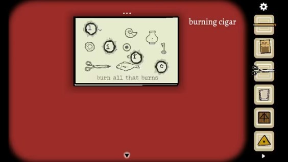 27、在打字机上敲入“burn”,随后会出现一张传单。接着,拿剪刀从传单中间剪开,把剪开的两张纸重叠放置。按照纸上“燃尽一切可燃之物”的提示,用雪茄把纸上能够被点燃的部分烧出洞,这时就会得到提示“life” 。
