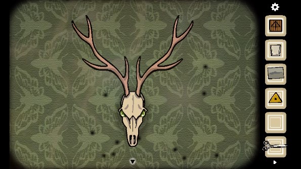 19、把眼球放进鹿的眼窝后,一群飞蛾出现了。依据飞蛾呈现的形状「鹿头、时钟、打字机、电视、门、镜子」,移动到相应位置,点击镜子,把飞蛾逐个点死,随后便进入男主的脑内世界。