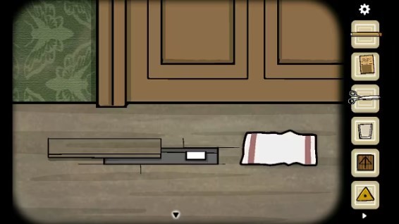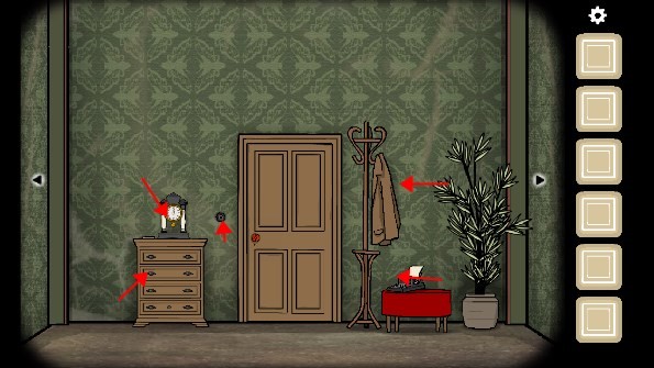 1. 从衣架上取走「大衣」,接着打开旁边的三层抽屉,拿出里面的「剪刀」、「照片碎片」以及「铅笔」。随后,打开门旁的开关,走到右边,取走灯罩里的「照片碎片」。