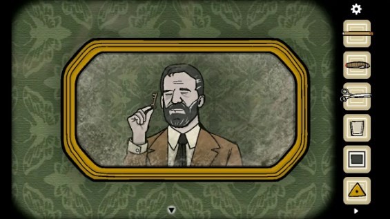 8、把时钟的时间调整至四点二十五分,从暗格中取出「火柴」,接着走到镜子前,点击雪茄,然后用火柴将其点燃,从而获取符号提示。