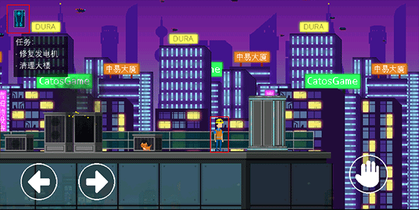 7、发电机修好后,继续向左移动,直至楼顶尽头。当出现交互图标时,点击右下角按钮,进入清理大楼的界面。在此界面,总共要历经四次清理,把信标摆放好就能通过。