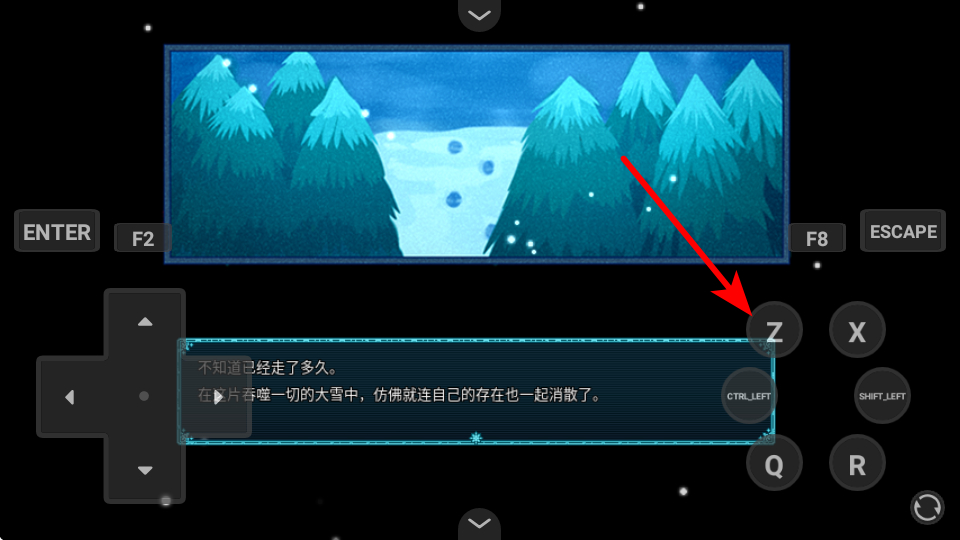 1在界面中点击Z键,能够推进当前剧情文本的展示,进而查看后续的场景描述信息。