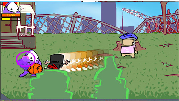 玩家能够拿起身旁的物件,像垃圾桶、煤气罐之类的,丢到马路上,借助来往的车流将物品吞没,以此给那些爱调皮捣乱的小孩一点教训。把握好正确的投掷时机,能更有效地惩戒那些顽皮的小朋友。