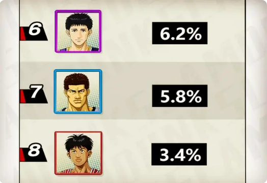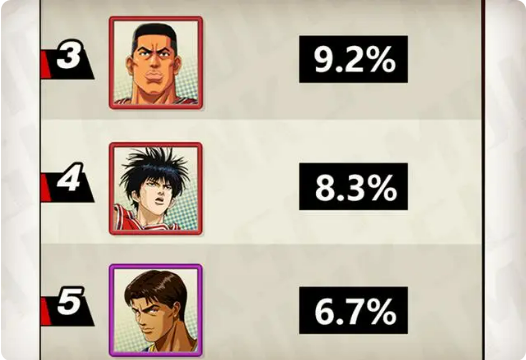 前两名被进阶樱木与进阶三井拿下了,虽然进阶三井的矛盾比较突出,但仔细想想,随便拉出来一局对局,进阶樱木十有八九会出现。毕竟进阶樱木的功能太全面了,可攻可守可协防。