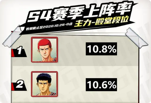 第三名被赤木拿下了,强大的篮板能力,成为对局的硬核保障。掌控篮板的男人,就可以掌控比赛。赤木还没有进阶都拿到了这个名次,如果后续进阶那还不得起飞喽。但也可以看到,赤木的一个上场率是比1、2名要低不少的。