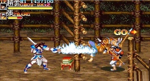 在众多游戏类型中,横版过关颇为流行。在这类游戏里,玩家能够挑选关羽、张飞、赵云、黄忠以及魏延这五位英雄。他们皆是历史上赫赫有名的猛将。进入战斗后,玩家既能进行简单的攻击操作,也能施展抓人并扔出去的技巧(此技巧相当关键),此外,还能通过下上拳搓招、下+跳突进等方式出招,游戏中算是具备了一些“招式”设定。