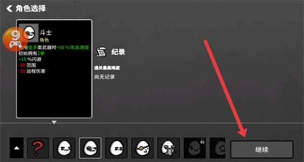 2、来到角色选择页面,挑选像斗士这类自己心仪的角色,随后点击继续。