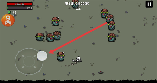 4、于游戏里,借助左下角的虚拟摇杆来操控角色移动,躲开怪物并将其击败,达成20波怪物的挑战。