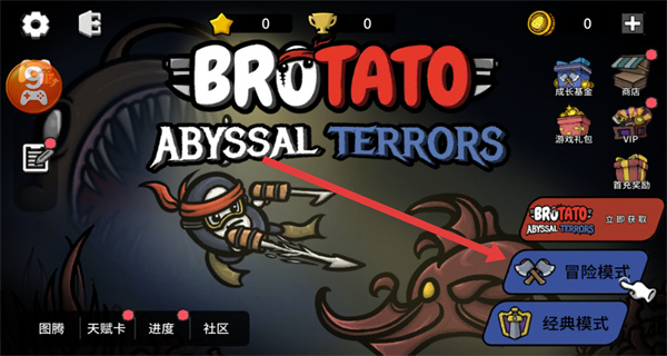 1. 启动《土豆兄弟Brotato》游戏,于主界面中点击冒险模式。