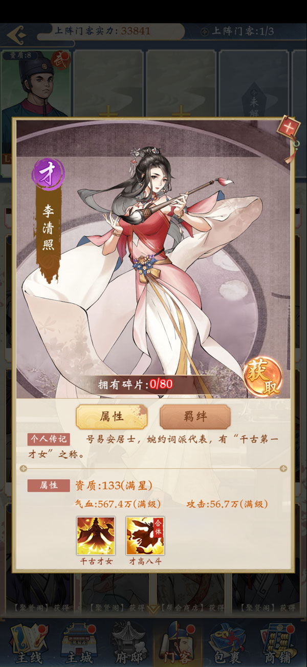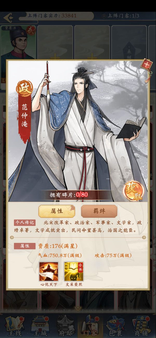 正常橙色门客里,可以围绕府尹包拯去构建搭配上阵。在聚贤阁中兑换的门客,也都互相有羁绊。