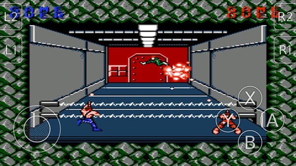 1. 游戏开始时,玩家手持普通冲锋枪,能够朝八个方向射击。不过,一旦获取强化武器,便会更换使用其他武器。玩家具备跳跃能力,且在跳跃过程中,可通过方向键操控移动与开火方向,跳跃时的方向把控在游戏进程里至关重要。倘若玩家直接接触敌人或其发射的子弹,就会导致死亡。而敌人常常布满整个屏幕,还朝着各个方向移动,因此,要避开它们需要一定技巧。