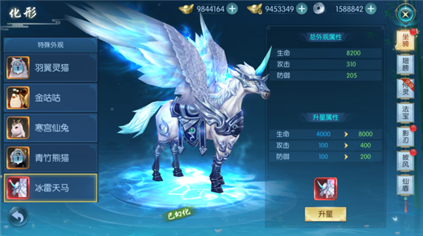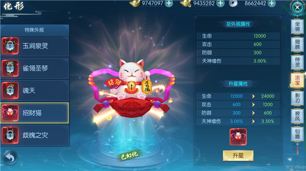 另外侍灵每升阶成功都有不同的形象;可以通过“化形”功能可以改变伙伴的外形,各种造型等你来解锁。