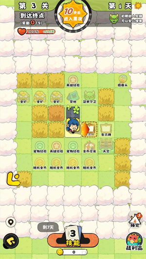 5、游戏在白天可以选择3个技能来强化自己,夜晚则会遇到更厉害的敌人。