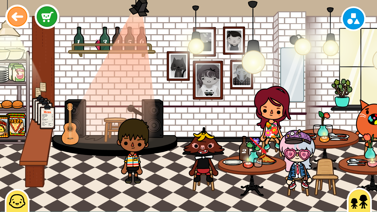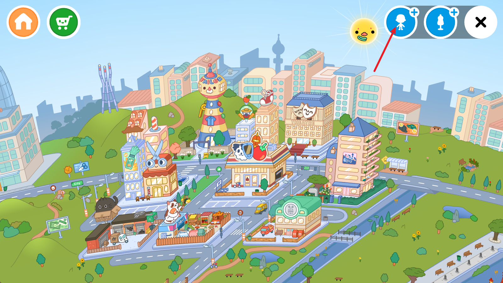 2比如在某个场景里,我们来到一家店铺内。点击界面右下角的黄色小人图标,就能把自己之前创建的角色添加到当前场景中。