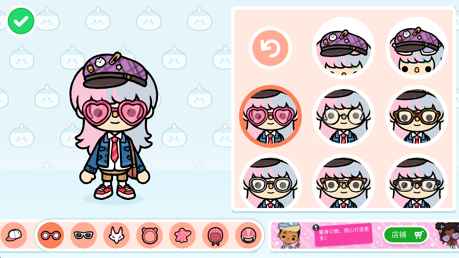 5、还能搭配一些美观的装饰,像帽子、眼镜之类的。