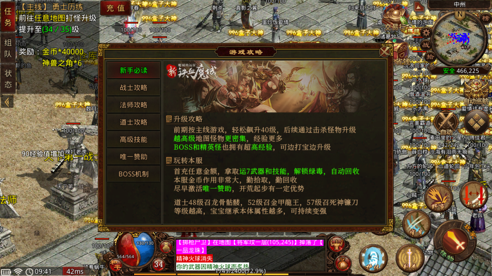 3、本服拥有海量地图,完全不用担心找不到怪物可打,部分新增BOSS配备了独创的智能AI攻击系统,强烈建议与小伙伴组队共同挑战!