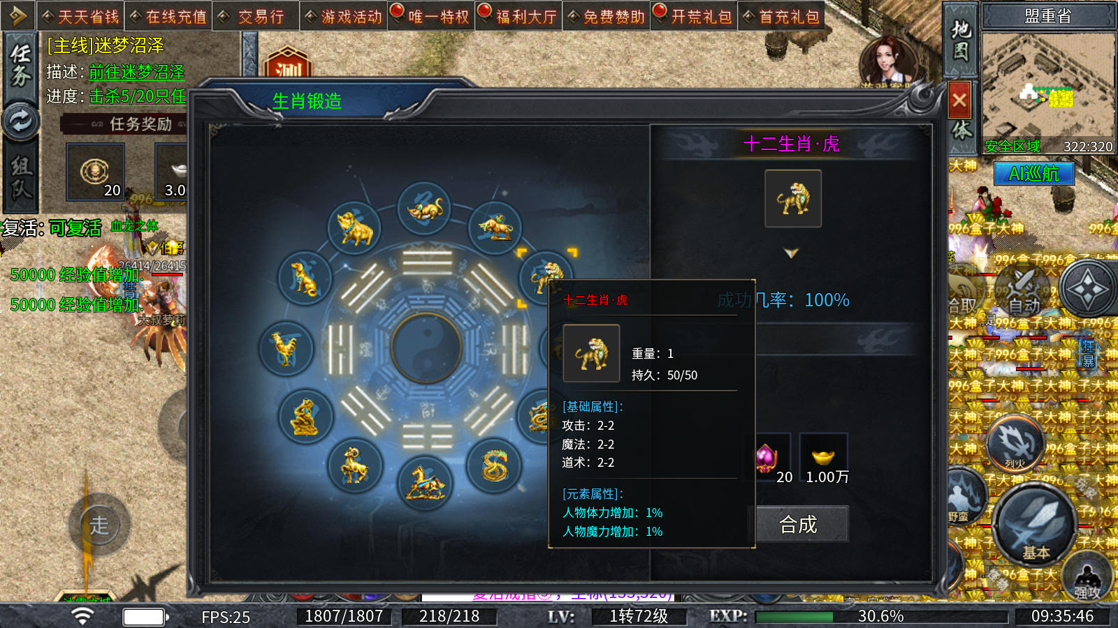 1通过消耗特定的生肖类碎片与元宝资源,能够合成对应生肖。每一个合成后的生肖,都可赋予角色攻击、魔法、道术方面的基础属性加成,同时还会提供额外的元素属性增益。