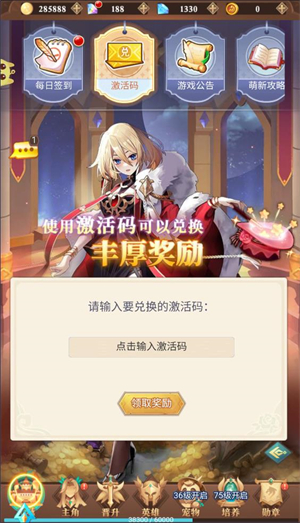 进入游戏主界面后,找到福利类功能入口,选择激活码兑换选项,在指定输入框填入对应的礼包码即可完成领取操作。