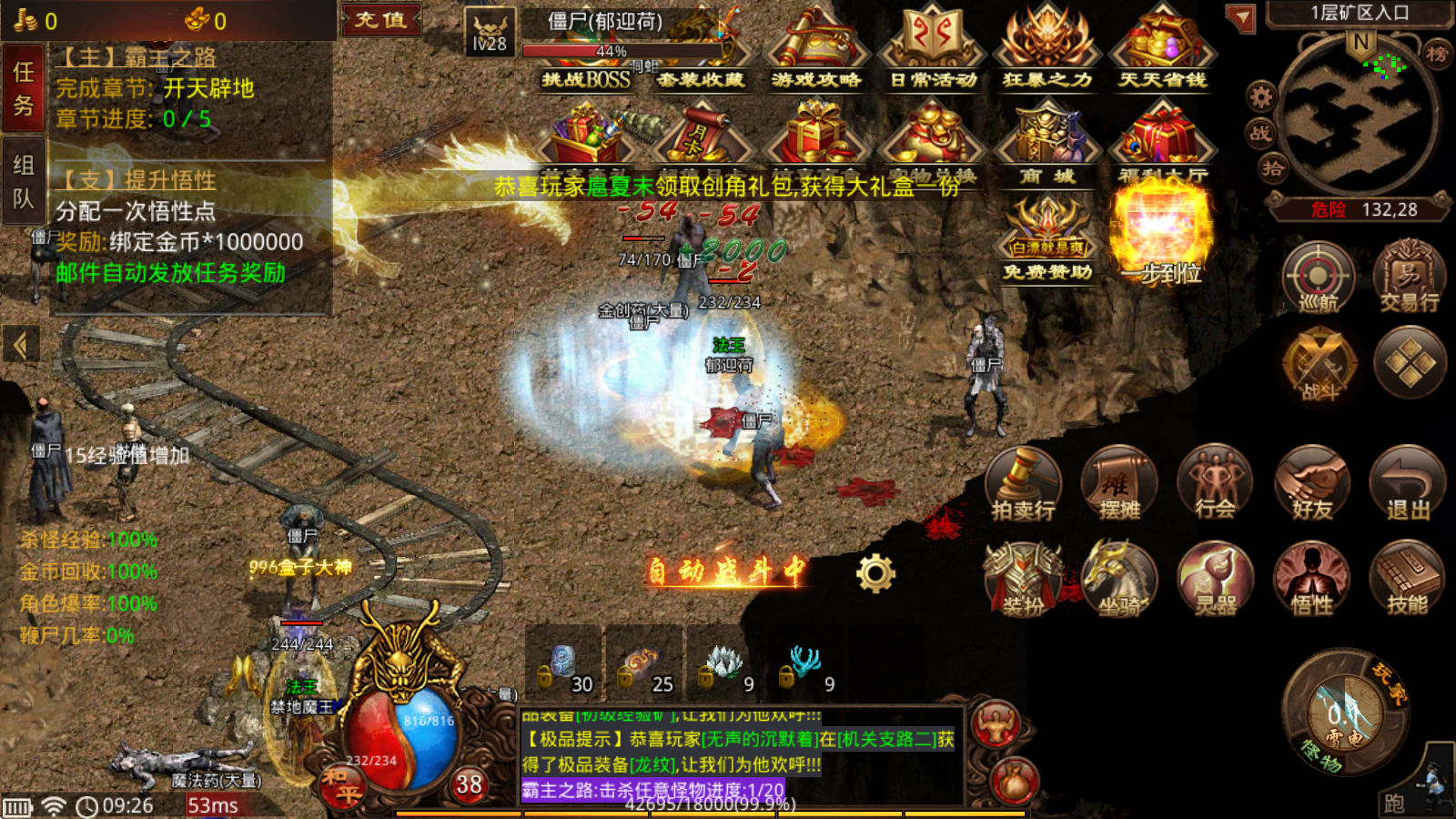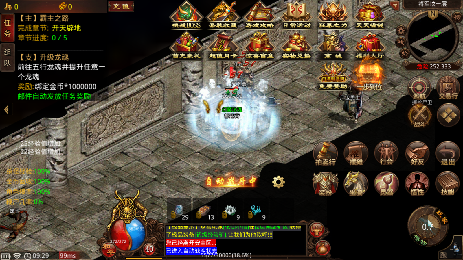 1、上线跟随主线霸主之路,带你熟悉游戏同时提升免费霸主特权,可以获得自动捡取,自动回收,多格背包,多项特权助力快速登顶。