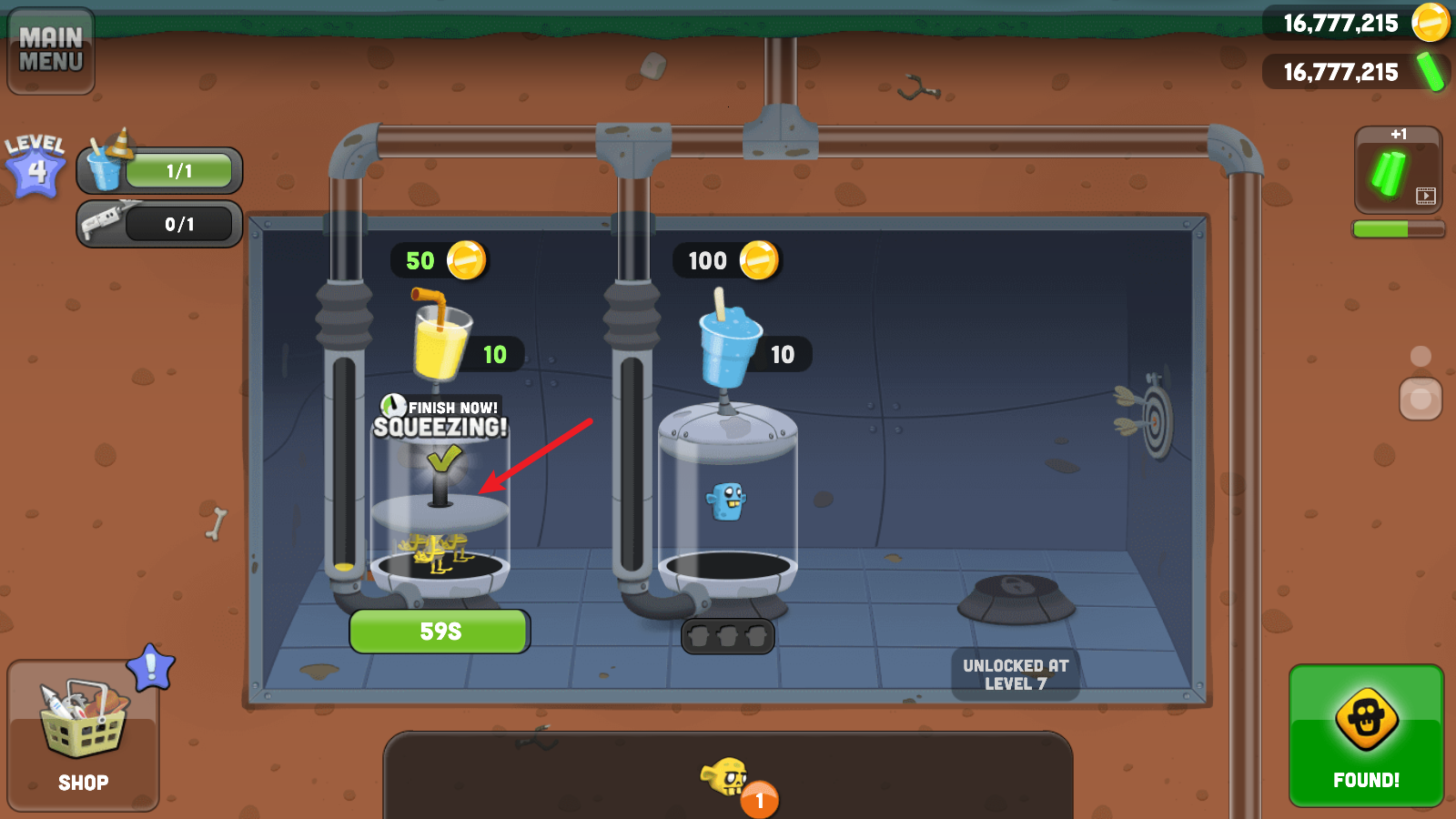 7、回到主界面,向下拖动后就可以来到榨汁机工厂,放入对应僵尸即可制作果汁。