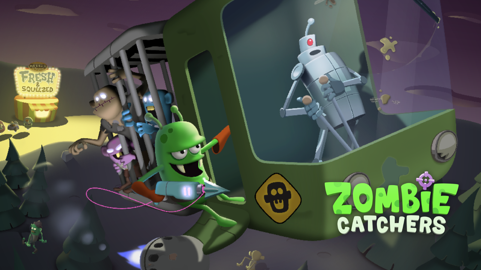 僵尸榨汁机国际版(Zombie Catchers),以僵尸为题材的一款模拟经营类。游戏中玩家将会扮演一个外星人,开了一家非常特殊的果汁店,原材料不是各种好吃的水果,而是各种小僵尸,为了能够维持果汁店的经营,你需要驾驶自己的飞船到各处捕捉僵尸,用它们做出美味的果汁来招待客人!