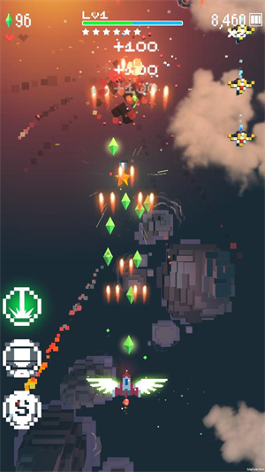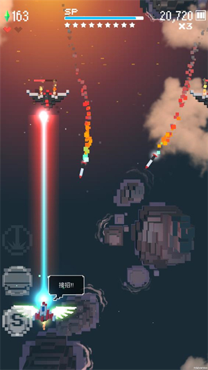 5、持续推进并消灭敌人,躲避敌方弹幕以防被击中坠毁,只要清除关卡内的所有敌人或成功击败boss即可完成通关。