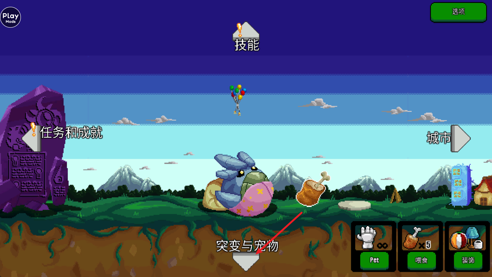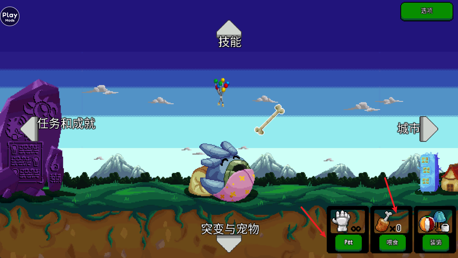 1进入游戏后,我们能在宠物界面通过和宠物玩耍、给宠物喂食的方式提升它的心情值,进而得到点数奖励。