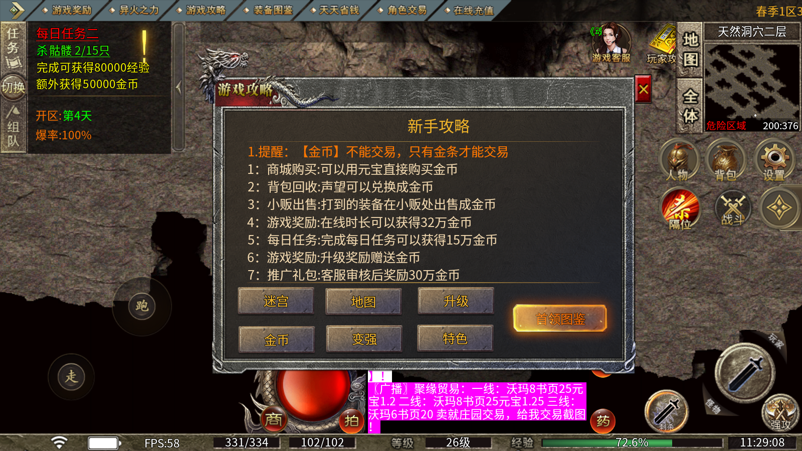 3、小贩出售:打到的装备在小贩处出售成金币。