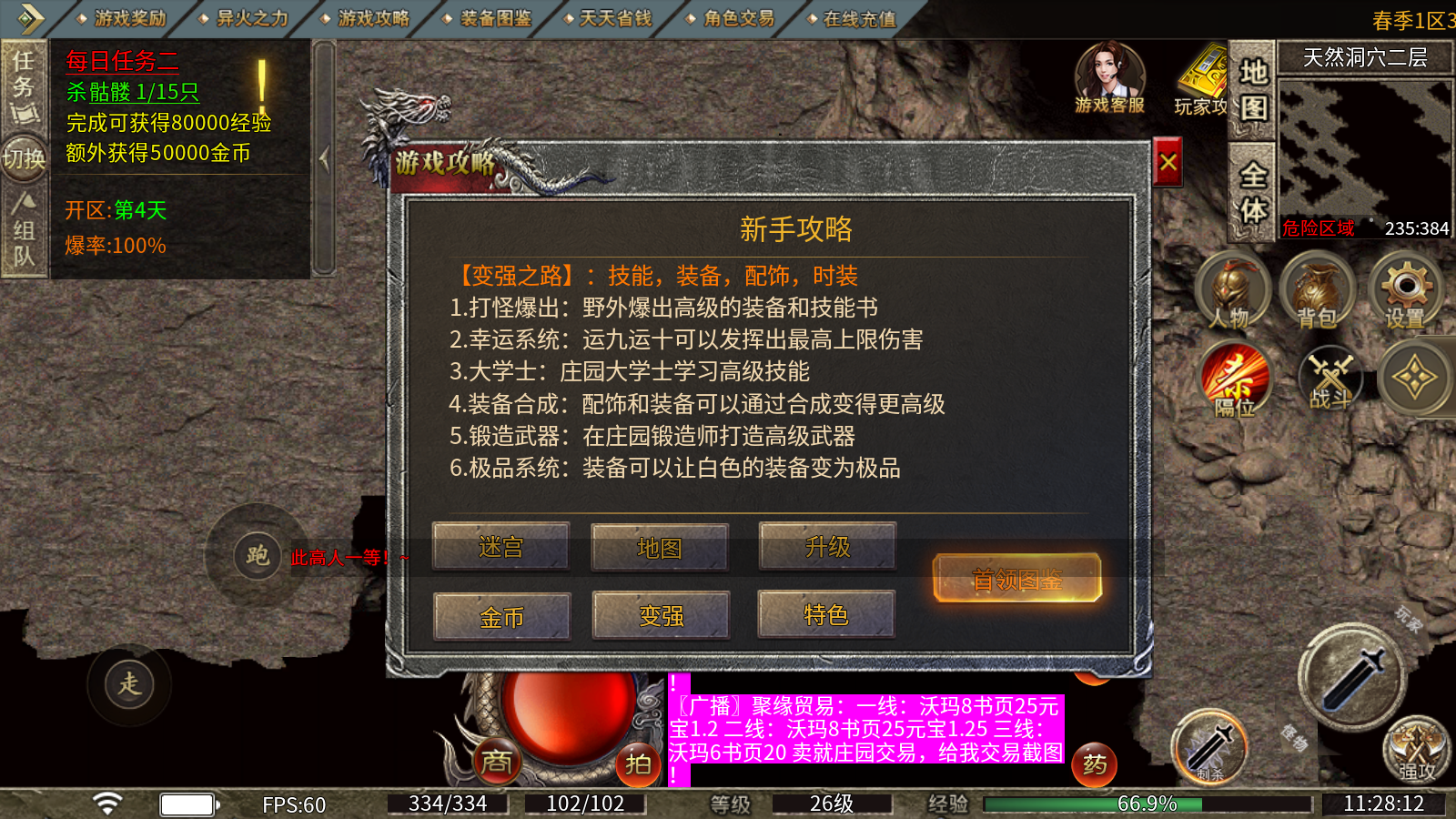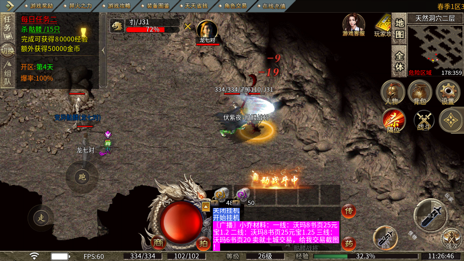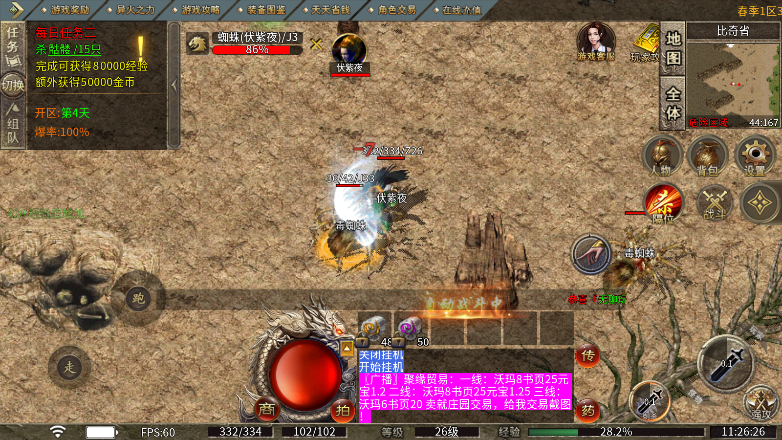 2、各大地图每隔3小时刷新小BOSS,6小时刷新大BOSS,人人都有机会抢BOSS,爆极品!