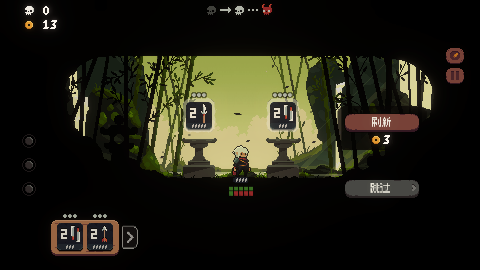 这是个靠硬实力的局,游戏里技能(遗物)的搭配构建没那么重要,只要行动格的强度足够就可以了。