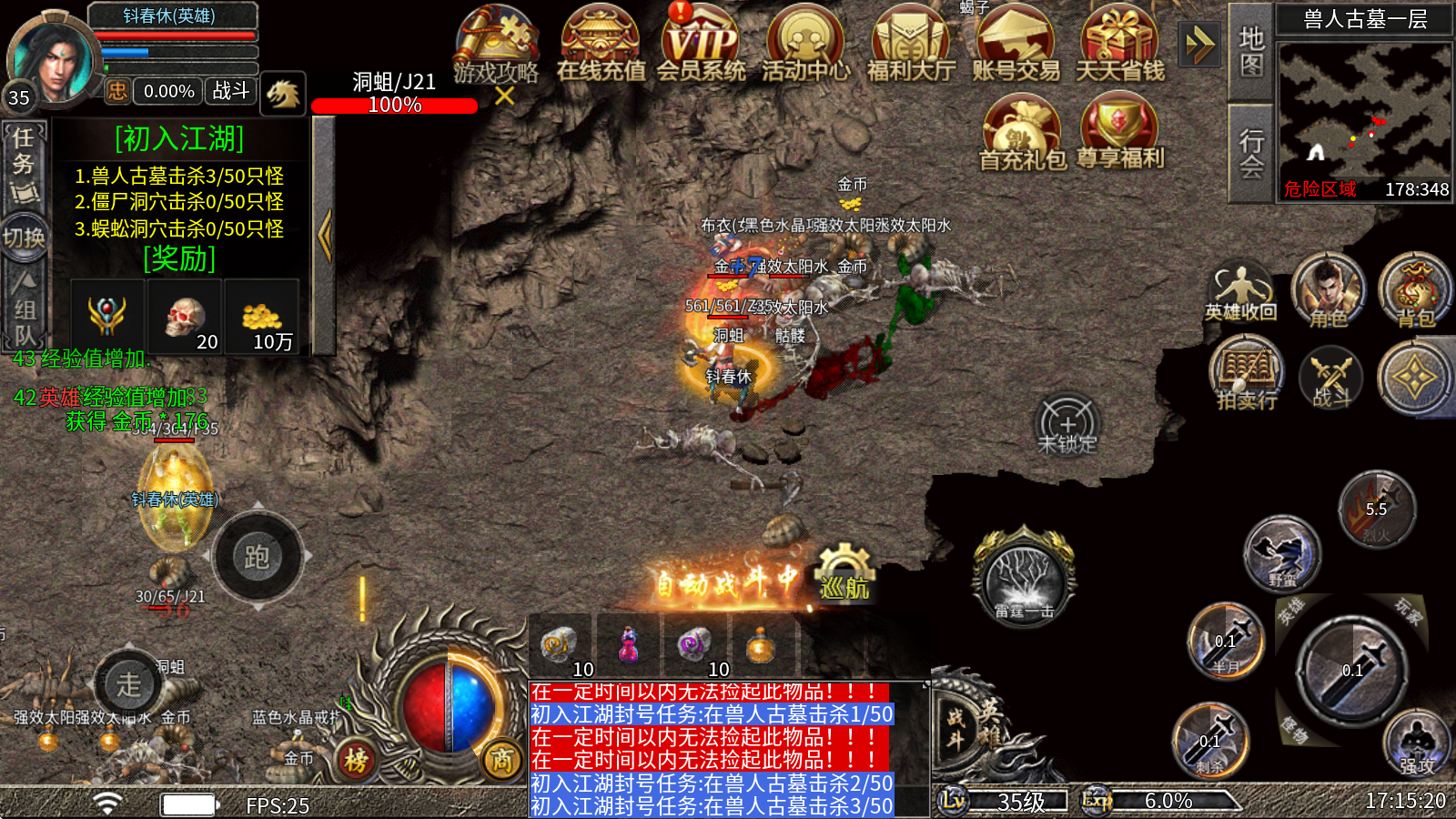 3、前期快速获得装备:进入高级地图,挑战魔龙教主,爆全服所有高级装备。
