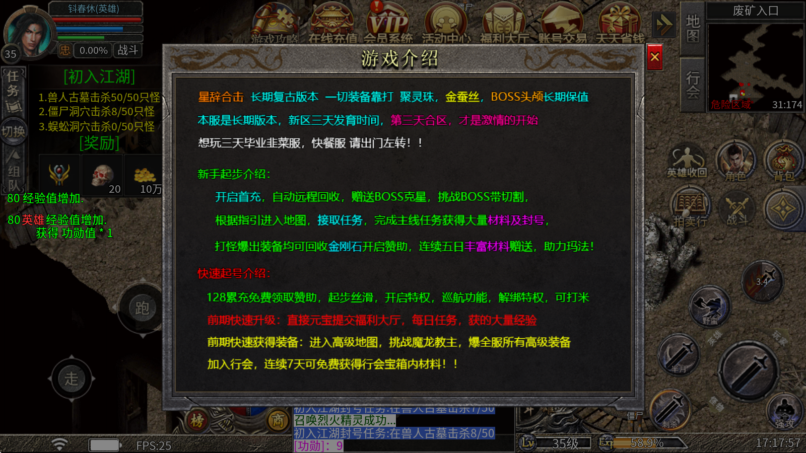 2、前期快速升级:直接元宝提交福利大厅,每日任务,获的大量经验。