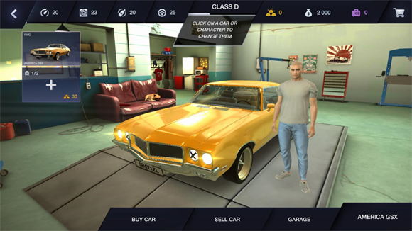 5、在主界面点击下方的钥匙按钮进入车库,在这里你可以购买或者出售车辆。