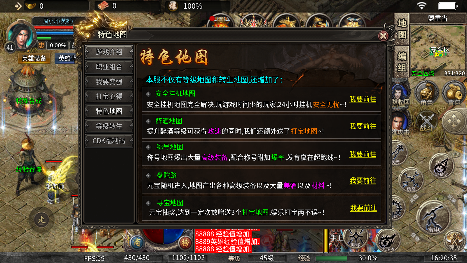 1、安全挂机地图:安全挂机地图已全面优化,即便游戏时间有限的玩家,也能24小时安心挂机,毫无后顾之忧!