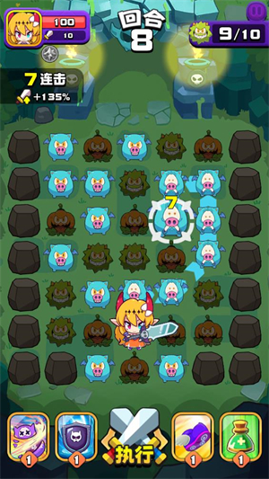 3、当连好路线后点击执行按钮就可以攻击这些怪物。