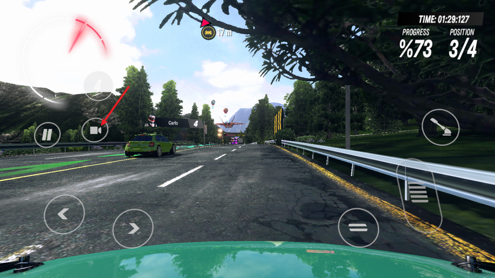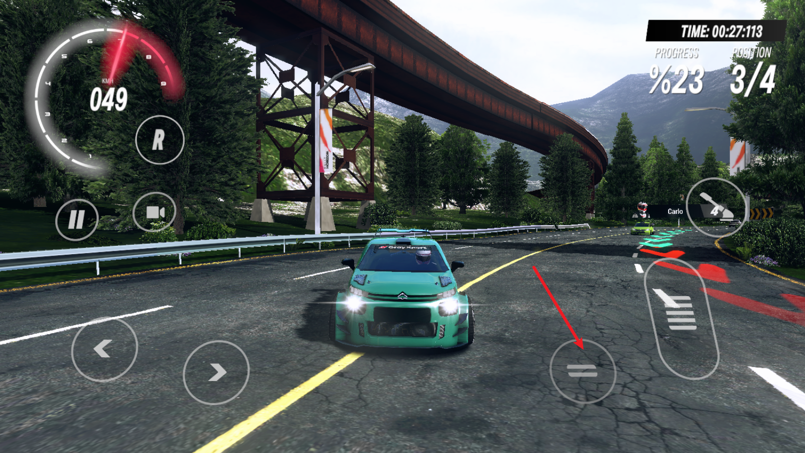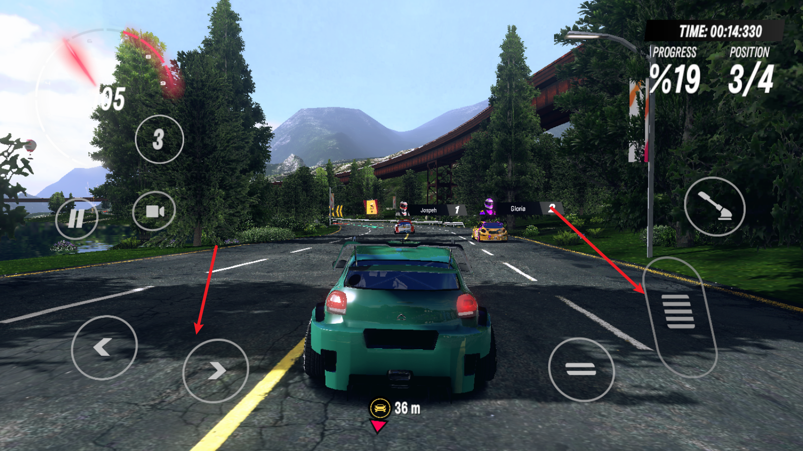 1进入比赛后,可通过左侧的方向键操控车辆转向,右侧的长踏板则用于车辆加速。