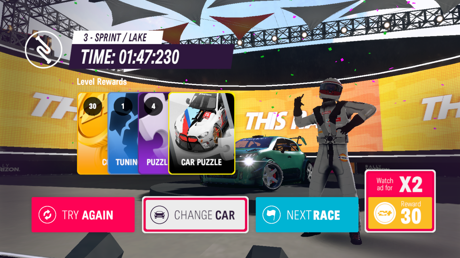 3多参与各类赛事获取丰厚奖励,解锁并升级座驾,提升赛车性能,助力你在赛道上更轻松地夺取胜利!