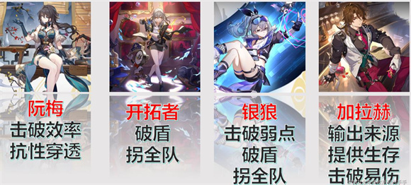 6、队伍搭配:同谐主+阮梅+加拉赫/其他奶+对应属性弱点主c/银狼