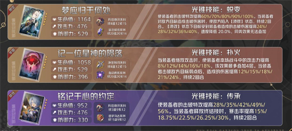 3、光锥推荐:五星光锥「夜色流光溢彩(同谐)」、五星光锥「但战斗还未结束(同谐)」、四星光锥「为了明日的旅途(同谐)」、三星光锥「轮契(同谐)」。