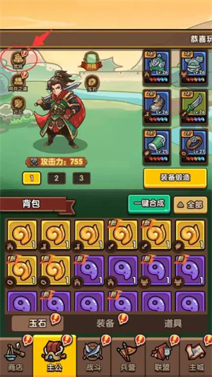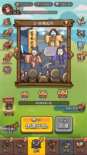 2游戏里每位武将都绑定了特定兵种,战斗时只要选中该兵种,对应的武将就会随阵型一同参战。这些武将不仅能获得当前局内该兵种的选牌加成,还拥有独特的专属能力,所以巧妙搭配武将是顺利通关的关键策略。武将系统在游戏开局时就已开放,入口位于主公界面的左上角位置。当主公等级提升至10级时,会免费获得民兵系武将关平,他能显著增强民兵部队的战斗能力。