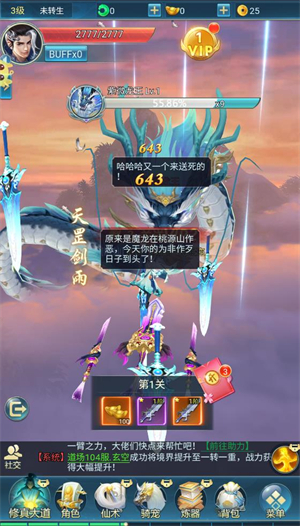 一款仙侠放置游戏,新玩家登录即可获得VIP资格,随着关卡推进还能直接解锁至高VIP等级。游戏内设有多样的首领挑战,海量装备可供自由组合,不同类型的副本可供挑选体验,更有丰厚奖励的任务等待完成。玩家可通过提升等级增强自身修为,在不断变强的过程中感受全新的冒险乐趣。
