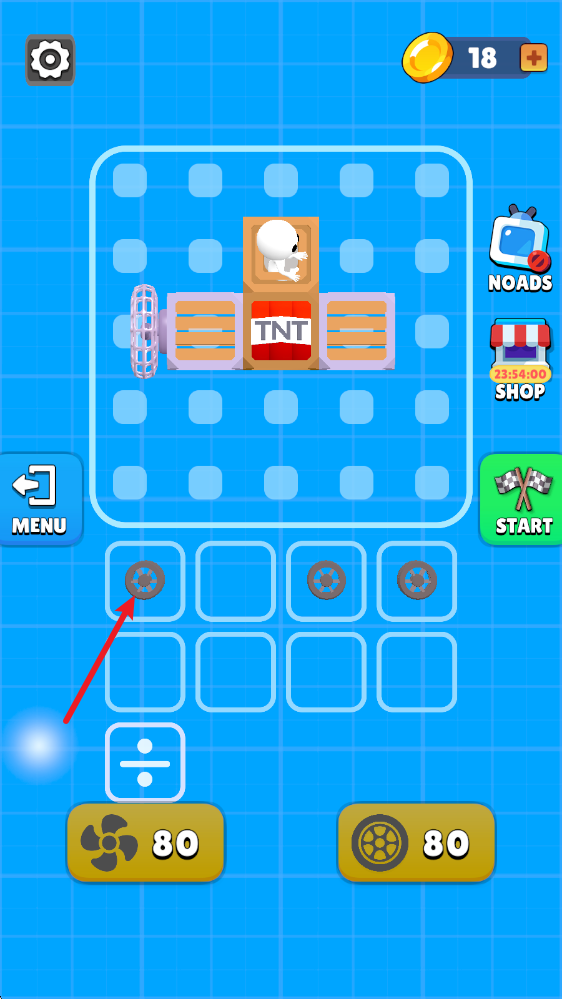 5车辆组装完成后,我们就能进入场景开启挑战了,触碰屏幕就能启动风扇,为前进提供动力。