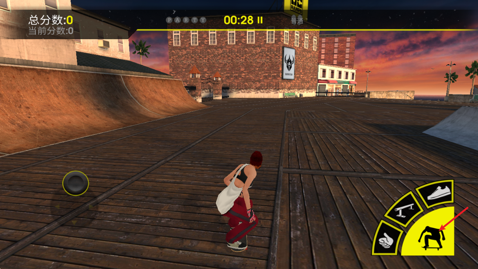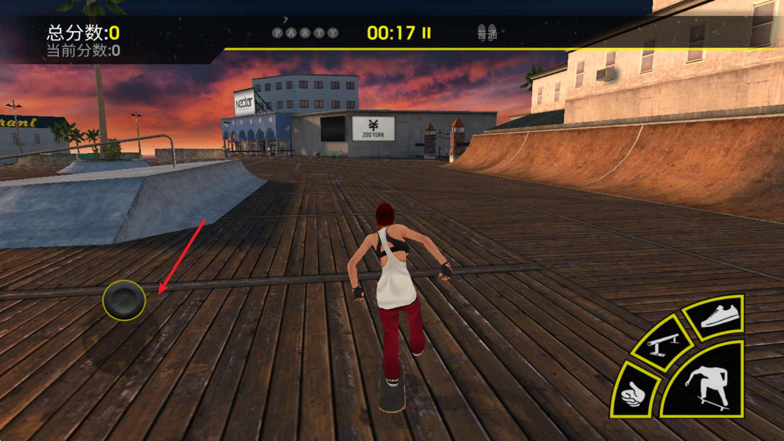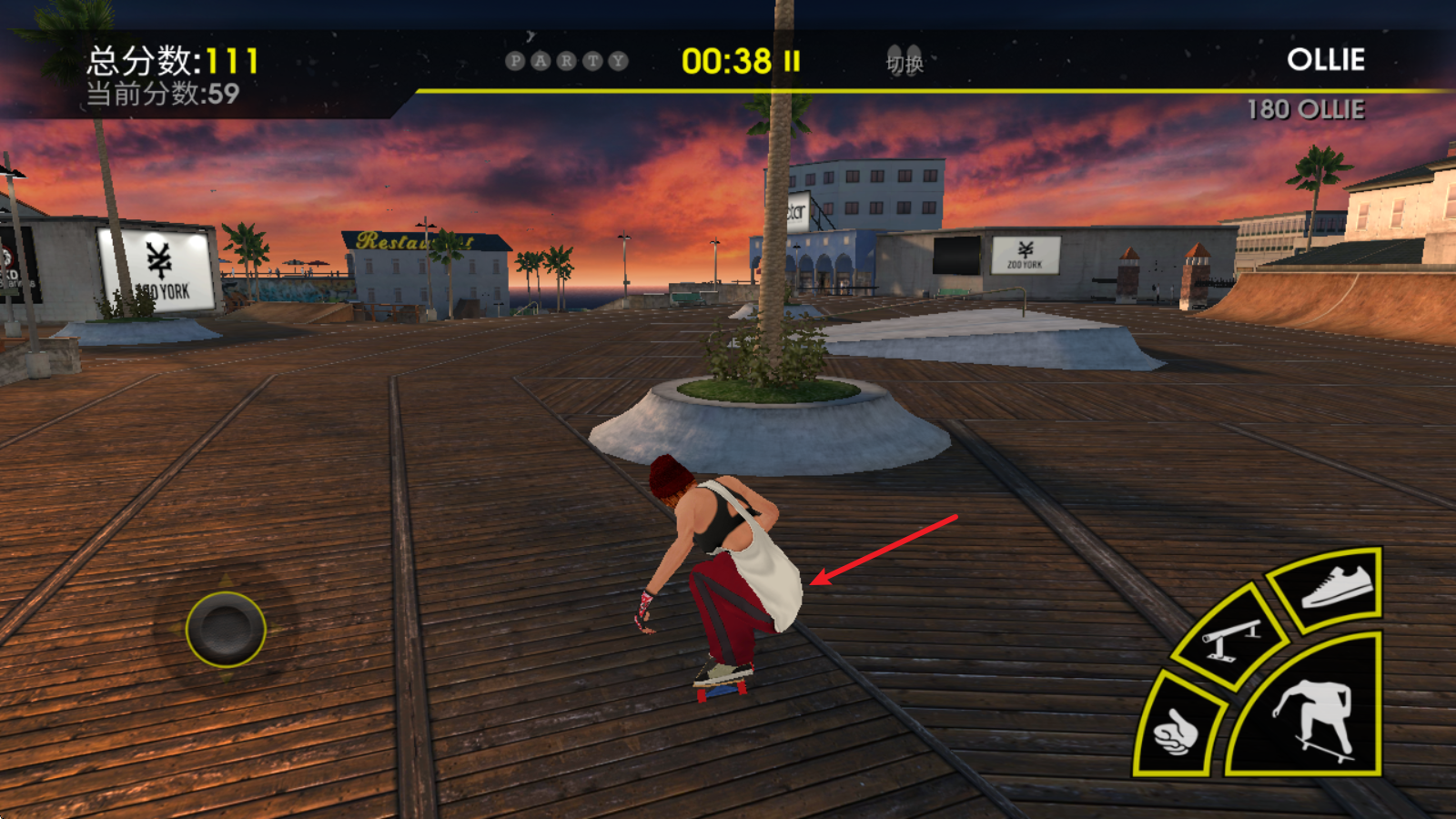 4剩下的几个按键可用于完成不同的滑板技巧,像鞋子图标对应的按键能让玩家跃起,并在空中带动滑板转动。