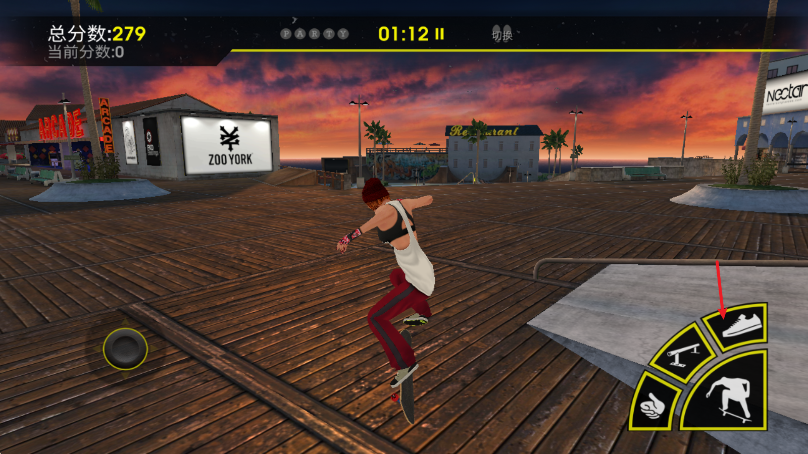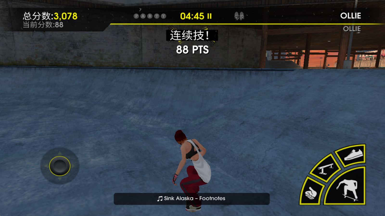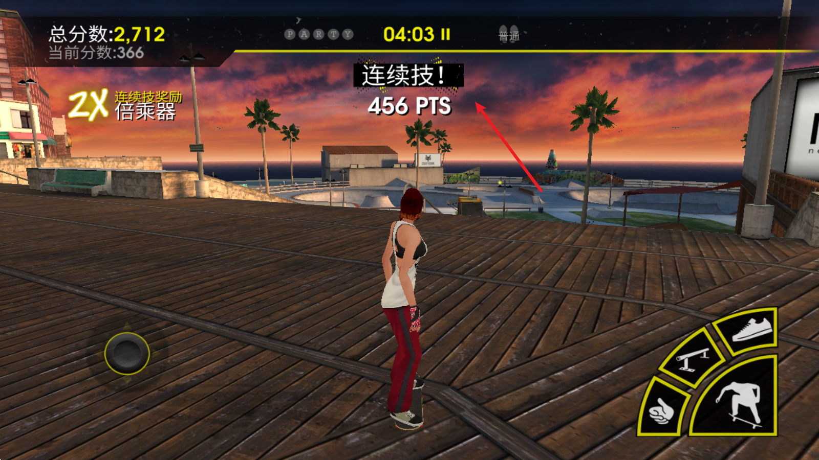 4剩下的几个按键可用于完成不同的滑板技巧,像鞋子图标对应的按键能让玩家跃起,并在空中带动滑板转动。